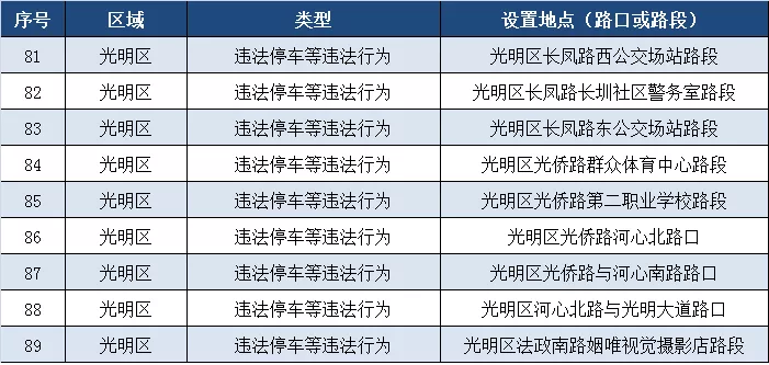 深圳新聞網(wǎng)11月5日訊(記者 何暢)據(jù)“深圳交警權(quán)威發(fā)布”微信公眾號消息,近期深圳交警公布啟用115套交通技術(shù)監(jiān)控設(shè)備,重點(diǎn)整治違法停車、沖紅燈、超速、逆行、不按車道方向行駛、占用公交車道等多種違法行為。其中福田區(qū)56套,羅湖區(qū)20套,寶安區(qū)4套,光明區(qū)35套。