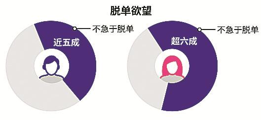 調查顯示,在脫單欲望方面,近五成單身男性和六成單身女性表示不急于改變單身狀態(tài)。可見,單身男女的脫單欲望正在逐漸下降。