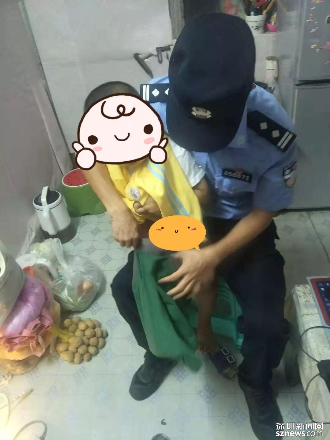 凌晨四時許,巡邏民警郭強(qiáng)途經(jīng)轄區(qū)深圳兒童樂園門口附近,發(fā)現(xiàn)一個兩歲左右的小男孩,像受到驚嚇的小鹿般恐慌不已,身上只穿了件白色小T恤,連褲子都沒穿,微風(fēng)晨露讓小孩瑟瑟發(fā)抖,滿是無助的樣子。