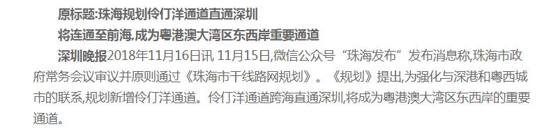 珠海規(guī)劃新增伶仃洋通道及其西延線,跨海直通深圳