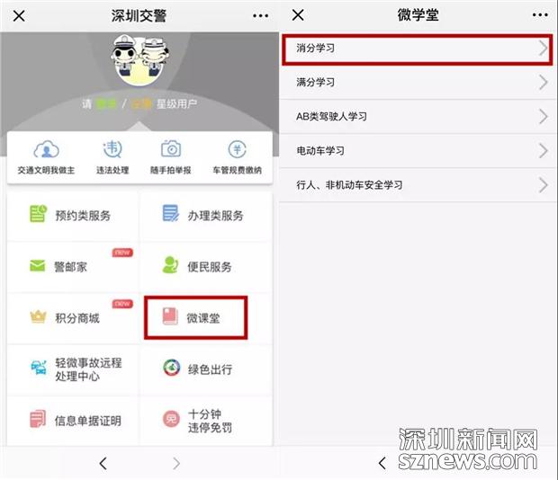 深圳新聞網(wǎng)11月22日訊(記者 涂勝)記者從深圳市交警局獲悉,通過深圳星級(jí)用戶平臺(tái)進(jìn)行“減分學(xué)習(xí)”,正常12分的駕駛證可多獲得6分,學(xué)習(xí)得來的6分還可以在線處理交通違法。