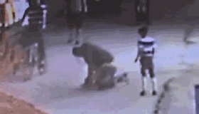 將小月按倒在地后,一名成年男子對(duì)著孩子的頭部打了五拳,看到圍觀市民越來(lái)越多,男子帶著身邊的男孩離開(kāi)。