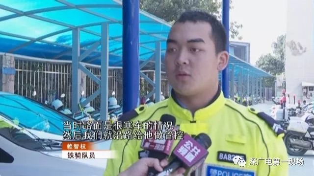鐵騎到場沿路管控,正在路面巡邏,松崗交警中隊(duì)鐵騎隊(duì)員賴智權(quán)和他的兩名同事,立即趕到現(xiàn)場。