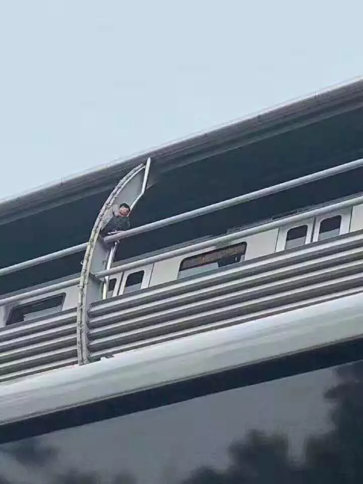 闖入軌行區(qū)后,爬上了高架車(chē)站頂棚