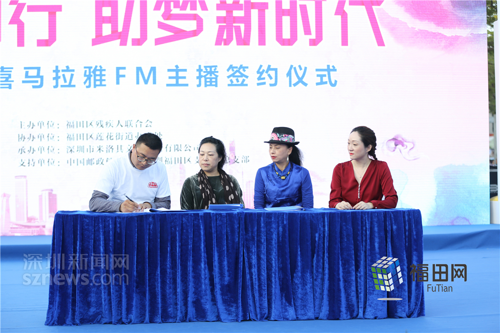 喜馬拉雅FM相關(guān)負(fù)責(zé)人現(xiàn)場與福田殘疾人網(wǎng)絡(luò)主播進(jìn)行簽約。