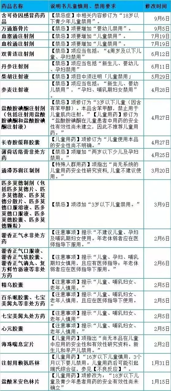 另外,關(guān)于一些藥品對兒童限用、慎用的匯總?cè)缦?