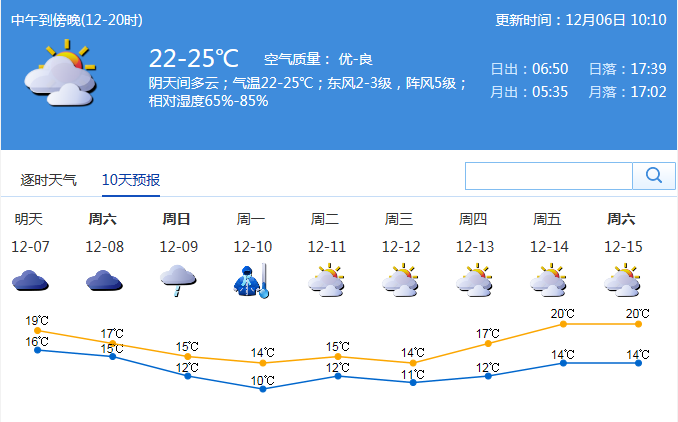市氣象局發(fā)布未來(lái)十天天氣預(yù)報(bào)(數(shù)據(jù)更新于12月06日10時(shí)10分)