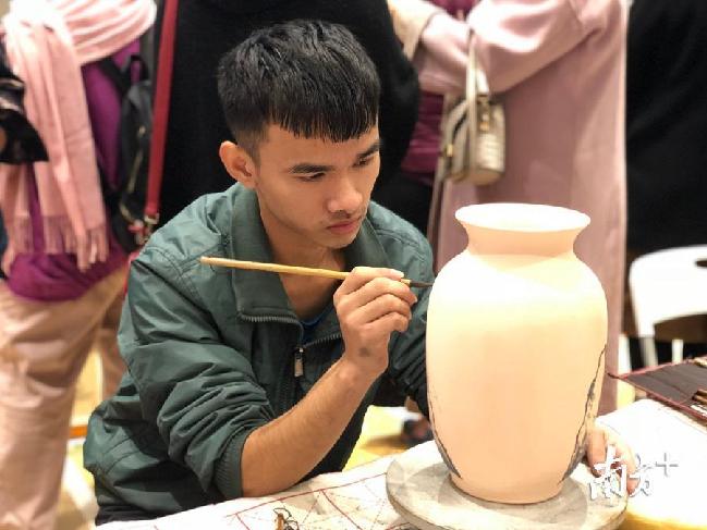 在本地文創(chuàng)館中,梅州市8個(gè)縣(市、區(qū))文創(chuàng)專區(qū)的展品吸引著現(xiàn)場(chǎng)觀眾的眼球,陶瓷、竹雕、木雕、葉畫、花燈、臉譜等代表性文創(chuàng)產(chǎn)品充分展示了地域文化特色。臺(tái)灣館、動(dòng)漫館等一些特色展館則以新奇和有趣的文創(chuàng)創(chuàng)意產(chǎn)品吸引了不少市民圍觀。