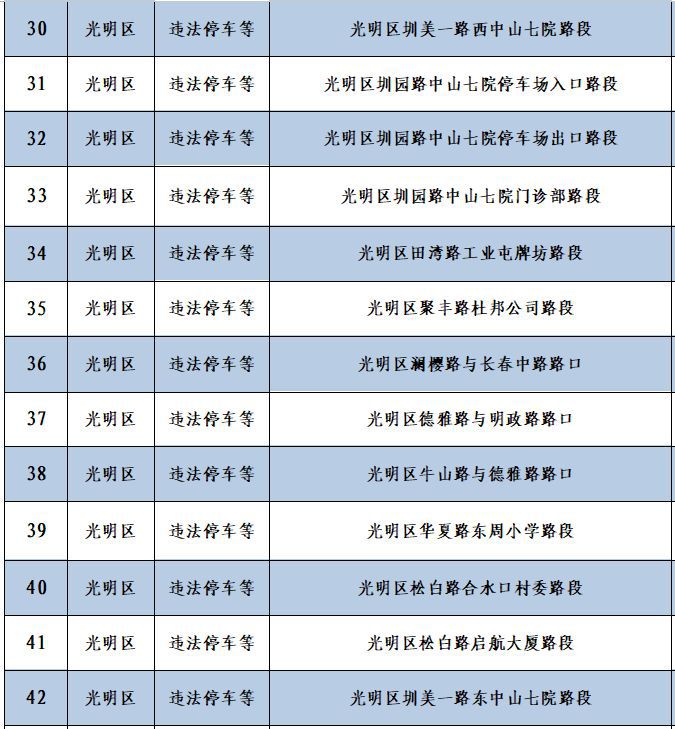 深圳新聞網(wǎng)12月10日訊(記者 何暢)據(jù)“深圳交警”微信公眾號(hào)消息,深圳56套“電子警察”新上線,其中46套專門查處違法停車,4套用于查處泥頭車違反禁行限行規(guī)定,6套用于查處沖紅燈、逆行、進(jìn)入導(dǎo)向車道變更車道等違法行為。56套“電子警察”具體分布位置如下: