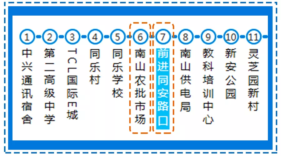 ▲學(xué)校附近有兩個(gè)公交站臺——前進(jìn)同安路口站和南山農(nóng)批市場站。