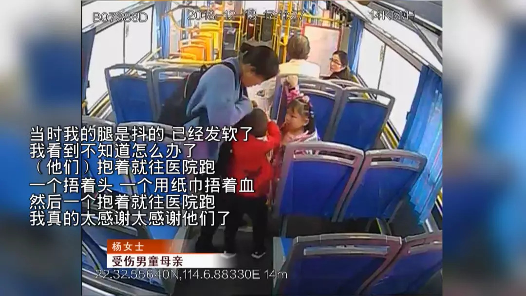 當(dāng)天下午5點(diǎn)20分,楊女士帶著她的一雙兒女,從羅湖區(qū)金光華廣場公交站臺,上了一輛前往文錦渡客運(yùn)站方向的360路公交車。正當(dāng)楊女士帶著大女兒在車廂前部投幣時,楊女士的年僅三歲的小兒子獨(dú)自一人跑向車廂后部。此時車子啟動了,楊女士的兒子不慎摔倒,頭撞在車廂后部的階梯上,血流如注。