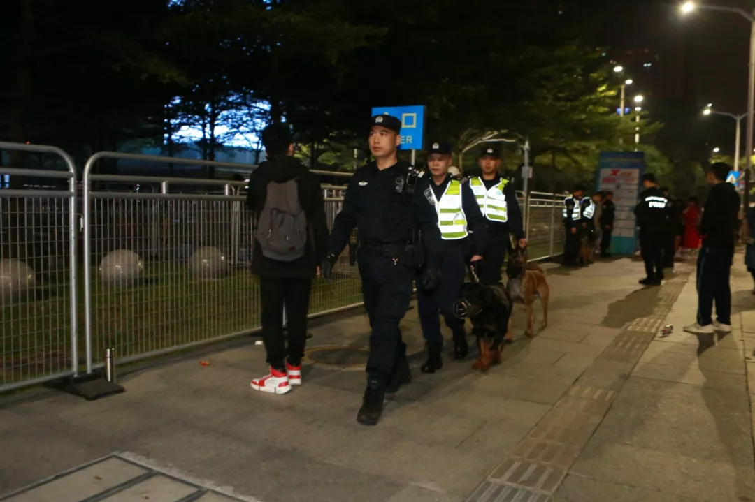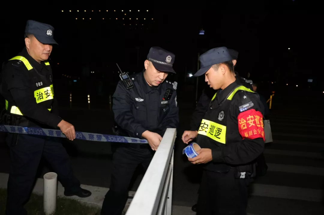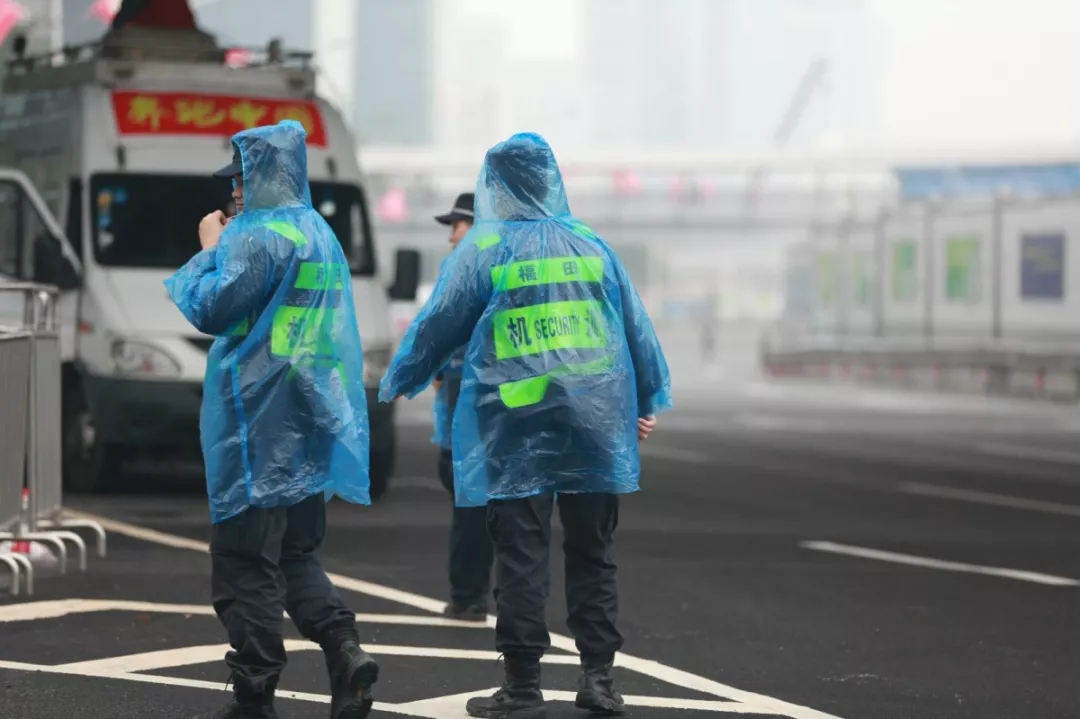 參戰(zhàn)民警、輔警們冒雨堅(jiān)守,維護(hù)秩序