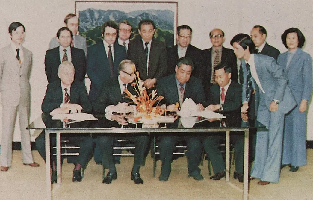 1980年1月14日,在中集首任董事長(zhǎng)袁庚等人的見證下,三方簽訂合資經(jīng)營(yíng)總協(xié)議書