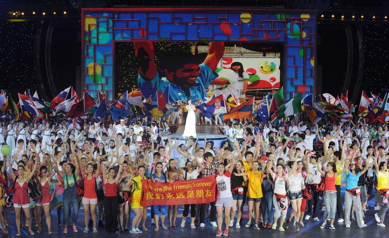 2011年8月23日,第26屆世界大學(xué)生夏季運動會閉幕式在深圳舉行。這是閉幕式上打出的“我們永遠是朋友”的橫幅。