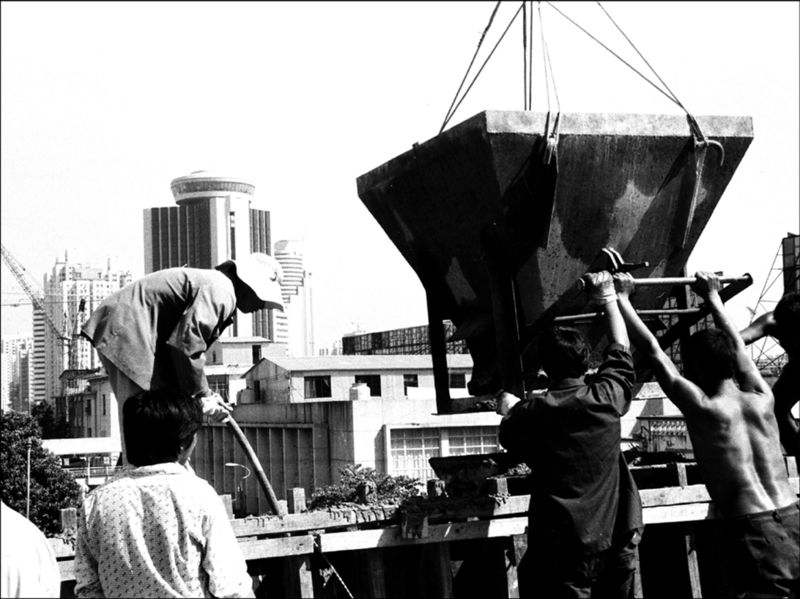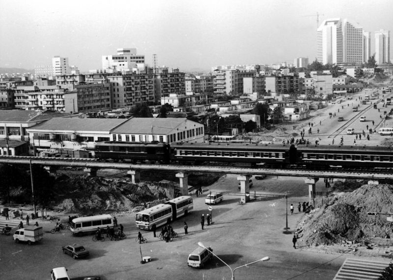 1985年,建設者們在深圳火車站人行天橋施工。呂翔攝