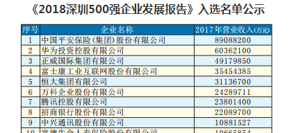 2018深圳500強(qiáng)企業(yè)今起公示, ...