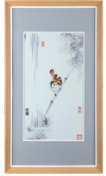 顧堅(jiān)瓷板畫細(xì)節(jié)讓人嘆為觀止(展覽方 供圖)