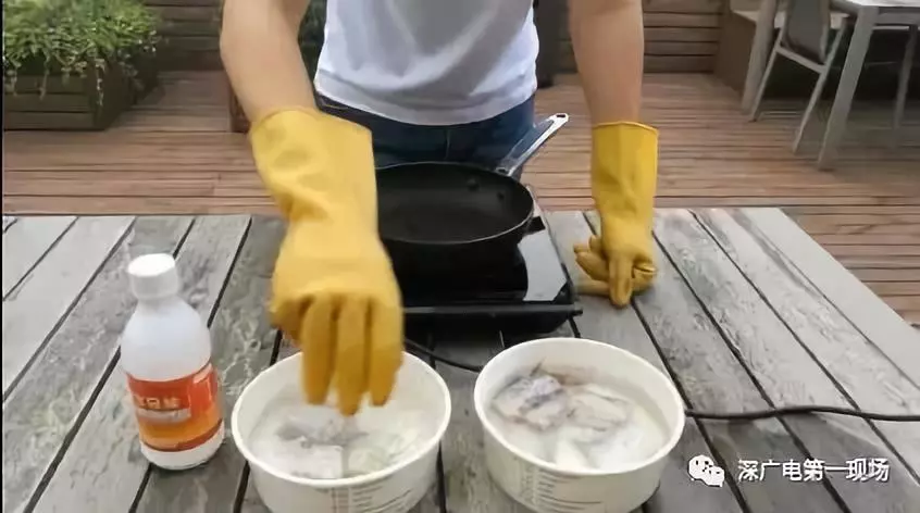 第三步,分別將正常帶魚和浸泡了福爾馬林的帶魚進(jìn)行油炸。