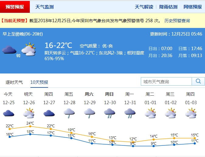 深圳今日回暖可見陽(yáng)光 本周五起氣溫下降 最低溫僅10℃