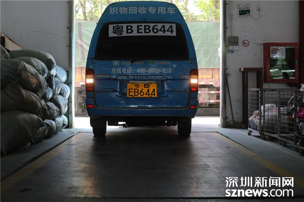 在福田區(qū)梅林一村的近停車場入口處,記者在幾乎要滿的織物回收箱前等待著該公司運(yùn)輸車輛的到來。不久后,一輛噴涂有織物回收專用車字樣的面包車進(jìn)入了停車場。據(jù)介紹,該車輛噴涂為政府統(tǒng)一要求,進(jìn)行廢舊織物回收的作業(yè)的車輛需要有統(tǒng)一的涂裝。