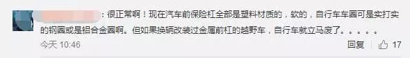 也有網(wǎng)友表示:"不管對司機還是行人來說,這不是搞笑,這是劫后余生的萬幸""防撞效果很好啊,本身就是要緩沖的""塑料懟鋼圈不就這樣?""難道不是為了保護發(fā)生碰撞時的行人?"。