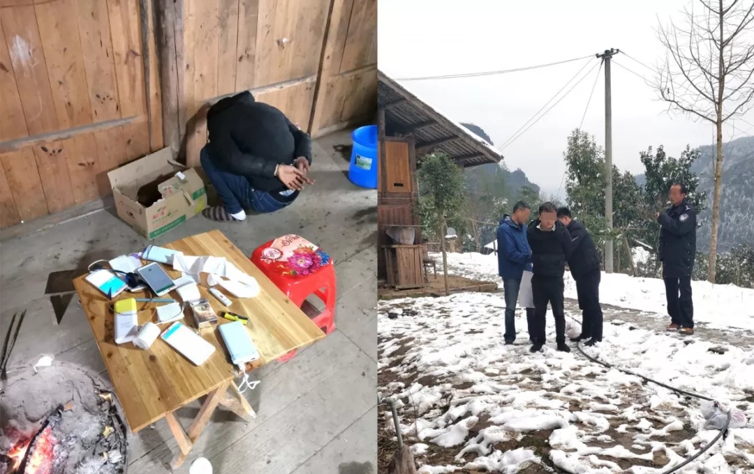 從深圳到千里之外的湘西,出發(fā)時(shí)還是“夏天”,抵達(dá)時(shí)已是“寒冬”。為防止詐騙分子警醒脫逃,辦案民警們只來得及帶兩三件薄衫就動(dòng)身啟程。沒想到還在趕路途中,湖南湘西就趕上了50年一遇的大雪。
