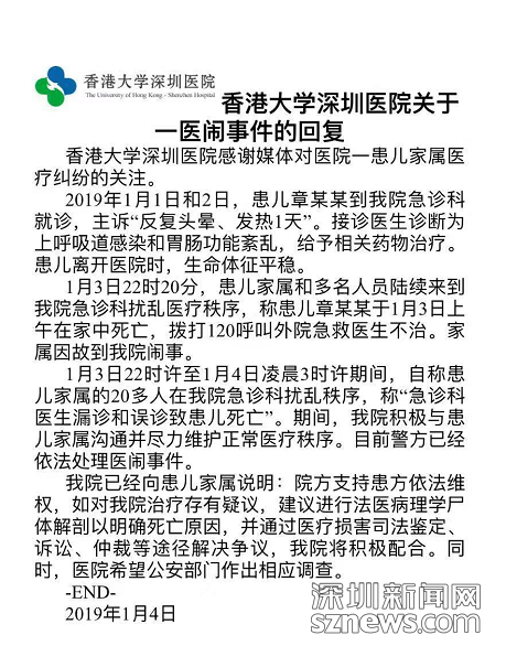 對此,港大深圳醫(yī)院回應(yīng):患兒離院時生命體征平穩(wěn),支持患方依法維權(quán)
