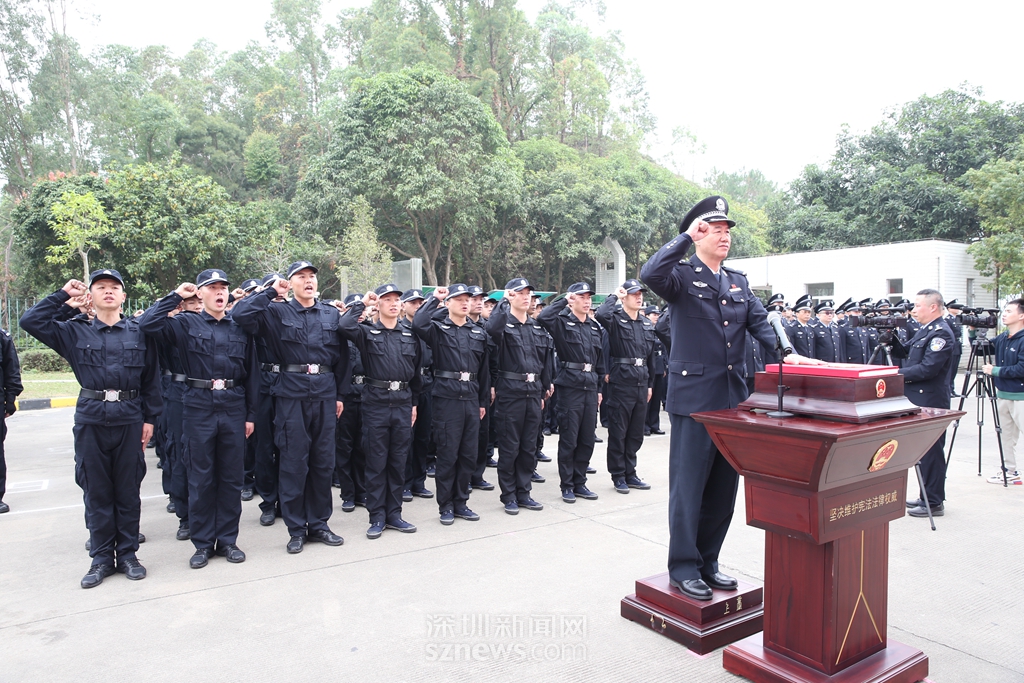 “我宣誓,忠于中華人民共和國憲法,維護憲法權威,履行法定職責,忠于祖國,忠于人民,恪盡職守,廉潔奉公,接受人民監(jiān)督,為建設富強民主文明和諧美麗的社會主義現(xiàn)代化強國奮斗!”鏗鏘誓言,猶在耳畔?;顒又校钲诒O(jiān)獄監(jiān)獄長蔡曙光,帶領70名新入職警察面對國徽、手撫憲法,許下了他們忠于祖國、忠于人民的錚錚誓言,這也是深圳監(jiān)獄對新入職警察開展集中的入職憲法宣誓。