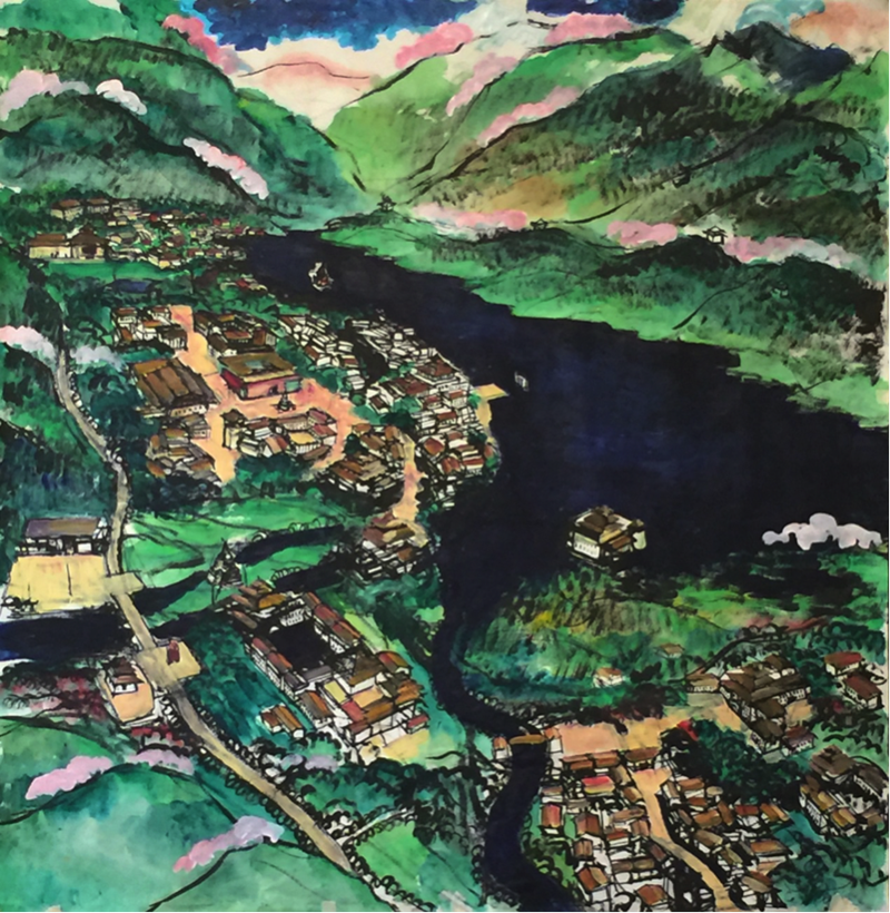陳可石魯朗小鎮(zhèn)構(gòu)思草圖(活動(dòng)主辦方提供)