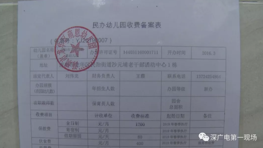對此,龍華教育主管部門回復(fù):2016年3月同意萌恩幼兒園設(shè)立;2018年7月該園取得民辦非企業(yè)單位登記證書的辦學資質(zhì),2018年12月向教育局申請了收費備案;2019年1月批復(fù)同意他們的收費標準。