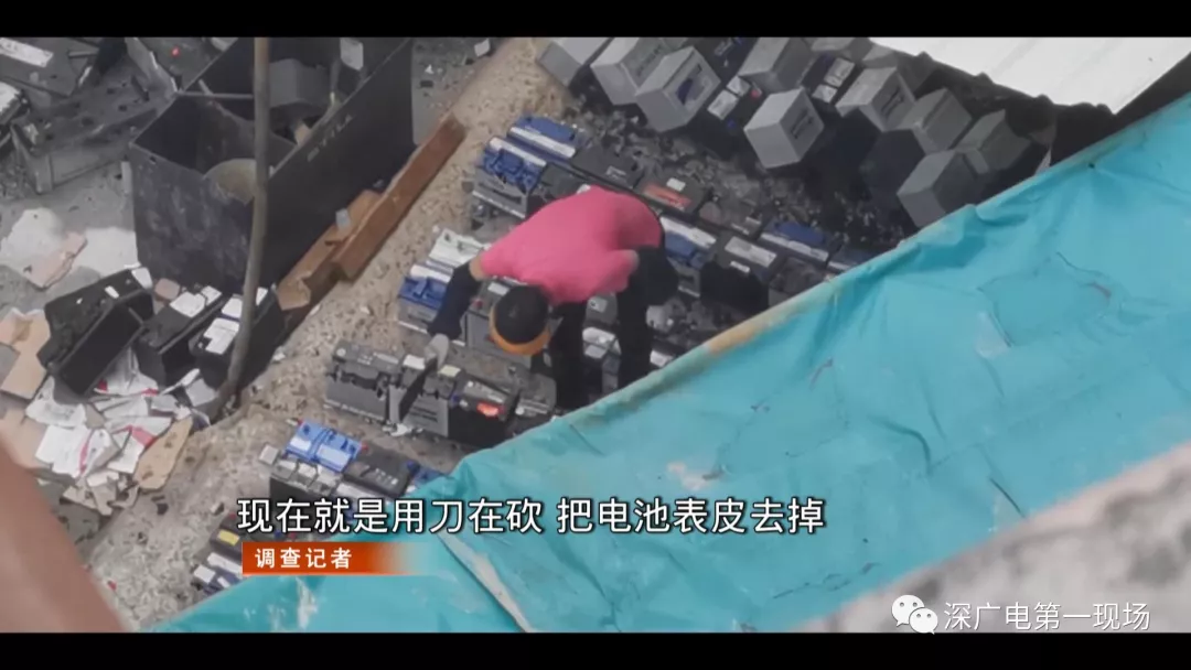 在前期的暗訪中記者發(fā)現(xiàn),3名工人拿著類似砍刀的工具,用簡(jiǎn)單粗爆方法,對(duì)電池進(jìn)行拆解,帶有強(qiáng)腐蝕性的電池廢液,無(wú)任何處理,滿地橫流。