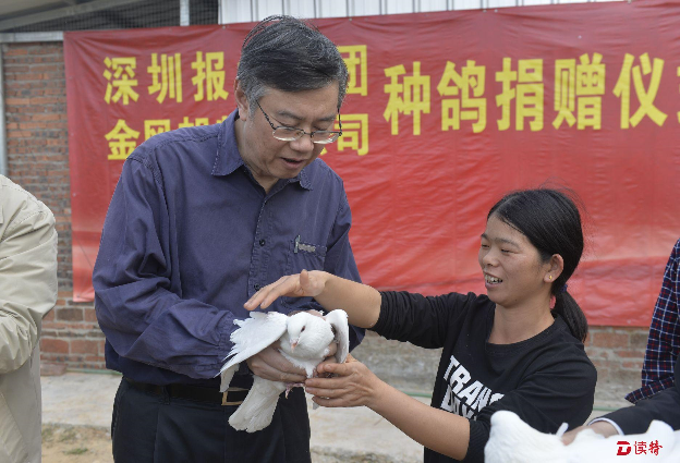 根據(jù)報(bào)業(yè)集團(tuán)“因戶制宜一戶一策”“一個(gè)黨支部結(jié)對(duì)一戶貧困戶”的安排,鐘仿明選擇養(yǎng)鴿脫貧,兩年多來,集團(tuán)金風(fēng)帆物業(yè)公司共計(jì)為他送來四批480對(duì)種鴿,還請(qǐng)來深圳光明農(nóng)場的技術(shù)員,對(duì)他進(jìn)行技術(shù)培訓(xùn)?!?80對(duì)種鴿全部成活!”1月20日下午,看到親自來送種鴿的陳寅等報(bào)業(yè)集團(tuán)領(lǐng)導(dǎo),鐘仿明拿出一面錦旗,非常激動(dòng)地說:“感謝黨的好政策,感謝深圳報(bào)業(yè)集團(tuán)的真心幫扶!”