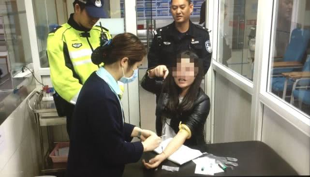交警:來,酒精測試。最后一次機(jī)會,小姐。我現(xiàn)在警告你,再不配合立即去抽血,不要在這里裝,一堆人服侍你,如果你想上頭條,我配合你。
