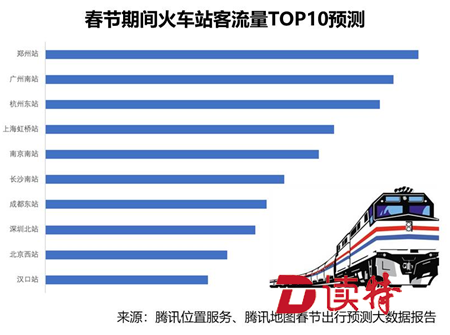 鄭州作為中國鐵路的中心,當(dāng)仁不讓地成為全國最熱門的火車站。而廣州南站、杭州東站、上海虹橋站預(yù)計(jì)分列二、三、四位,基本集中在人流密集的一線城市及區(qū)域性中心城市。