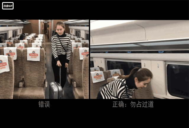 列車上,行李應(yīng)擺放好在行李架上,請(qǐng)勿擺放在過(guò)道,影響正常使用。