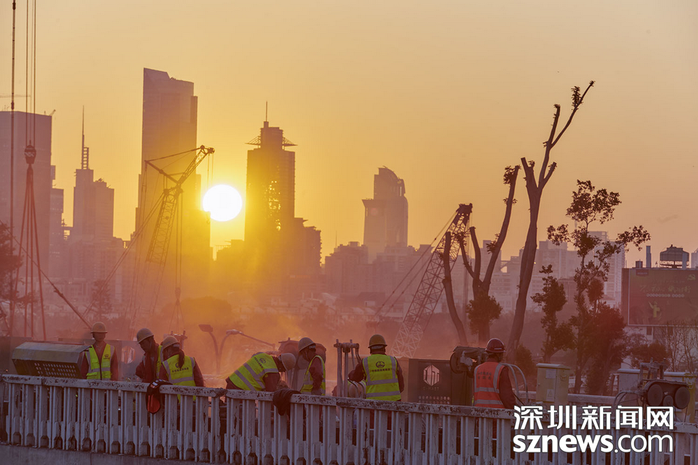 深圳新聞網(wǎng)2019年2月3日訊(記者 黃賢娟 趙穎致 黃婉婷 胡志方 林婉婷)與日漸冷清下來的街道商鋪不同,春節(jié)前夕的黃木崗立交仍是一片繁忙景象。這是2月2日傍晚,數(shù)百名身穿橙黃馬甲的工人正在忙著將立交橋切割分離。平板車、模塊車往來穿梭,將一塊塊拆卸下來的橋體陸續(xù)運(yùn)走。夕陽西下,橙黃色工服反射出點點熒光,成為安靜的城市中獨(dú)特的點綴。