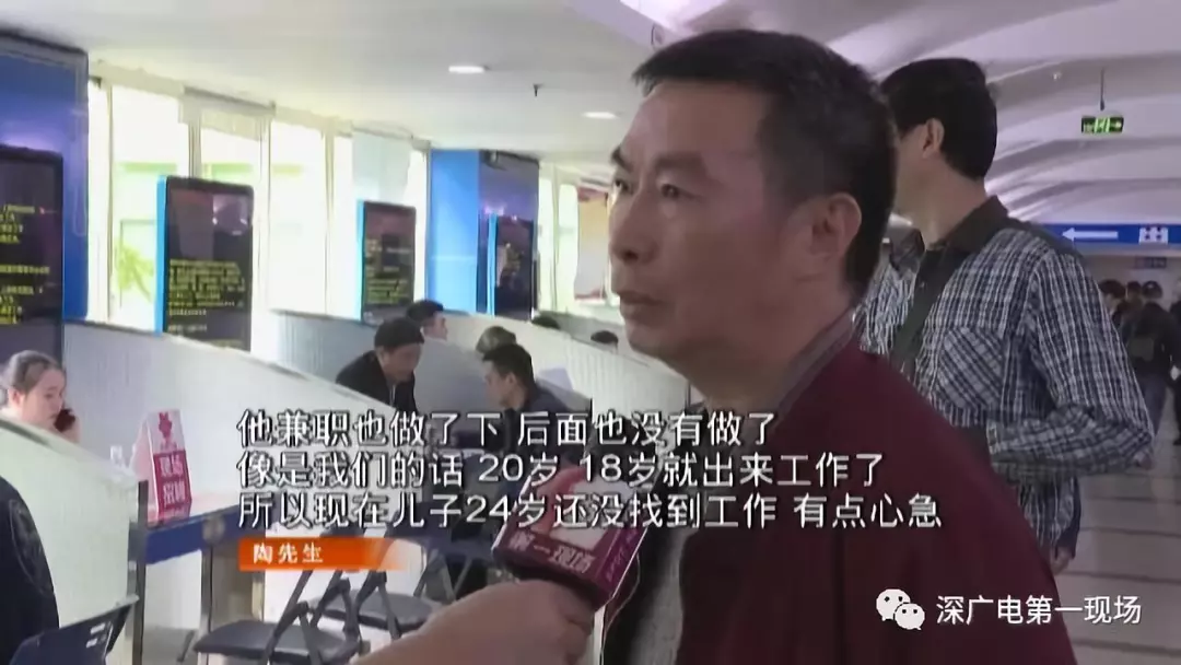 一位求職者和父親一起來到現(xiàn)場,這位父親陶先生告訴記者,兒子畢業(yè)后也有找過兼職,但是經(jīng)常待在家里,他覺得兒子年紀已經(jīng)24歲,不算小了,所以有些著急。