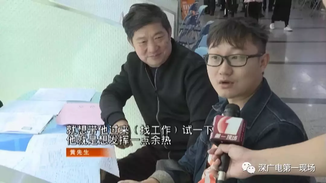 陶先生是來幫兒子找工作的,不過現(xiàn)場有一位黃先生,他情況剛好相反,他是來幫他57歲的爸爸找工作的。黃先生告訴記者,他帶父親過來主要是父親覺得在家里悶著太無聊了。這位57歲的父親表示,他覺得自己還年輕,也想幫孩子分擔一點壓力,所以想出來找份工作。