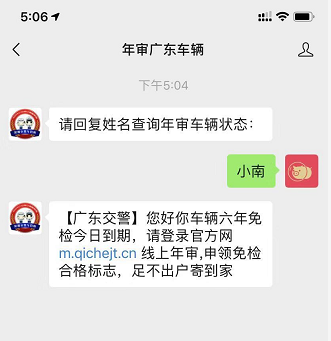 隨便輸入字符后,公眾號(hào)提醒,“車輛六年免檢今日到期”要求登錄官網(wǎng)線上年審。
