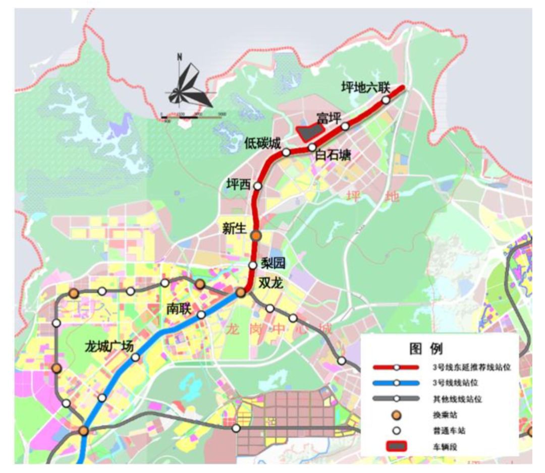 3號(hào)線東延線連接后福、新生、低山、坪西、坪地、坪東以及龍崗中心等地區(qū),并通過已建成運(yùn)行的3號(hào)線連接至福田中心區(qū),是聯(lián)系坪地中心與龍崗中心、橫崗中心、布吉中心、羅湖中心以及福田中心的城市軌道干線。線路全長(zhǎng)約9.4km,其中地上線約2.0km,地下線約7.4km。