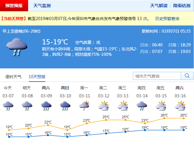 今日全市陰天有分散陣雨,氣溫15-17℃。市氣象局預計,8日陰天有中到大雨,部分時間雨勢較大;9-10日陰天有大雨,局部暴雨,間中有雷暴和短時大風;11日陣雨轉多云;12-13日多云間晴