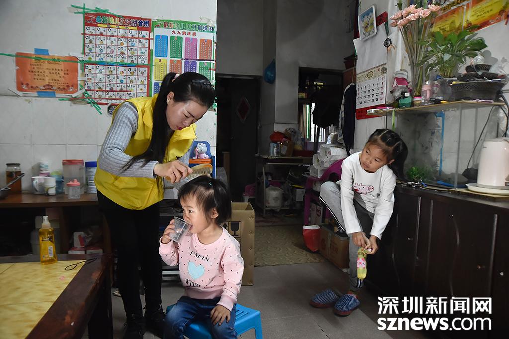 陳永美在為剛起床的小女兒欣瑤梳頭,這是每天的“固定動作”,只要有時間,她便愿意為女兒們做一些事情
