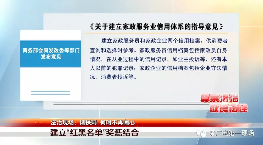 深圳家政行業(yè)協(xié)會(huì)會(huì)長(zhǎng):這次這個(gè)意見核心也是建立家政服務(wù)從業(yè)人員和服務(wù)企業(yè)的信用,通過明明白白的信用記錄,讓市民可以清楚透明的知道你這個(gè)保姆或者這個(gè)企業(yè)信用怎么樣。對(duì)于市民來說,請(qǐng)人更靠譜。對(duì)于從業(yè)人員和行業(yè)來說,更加自律更加規(guī)范。