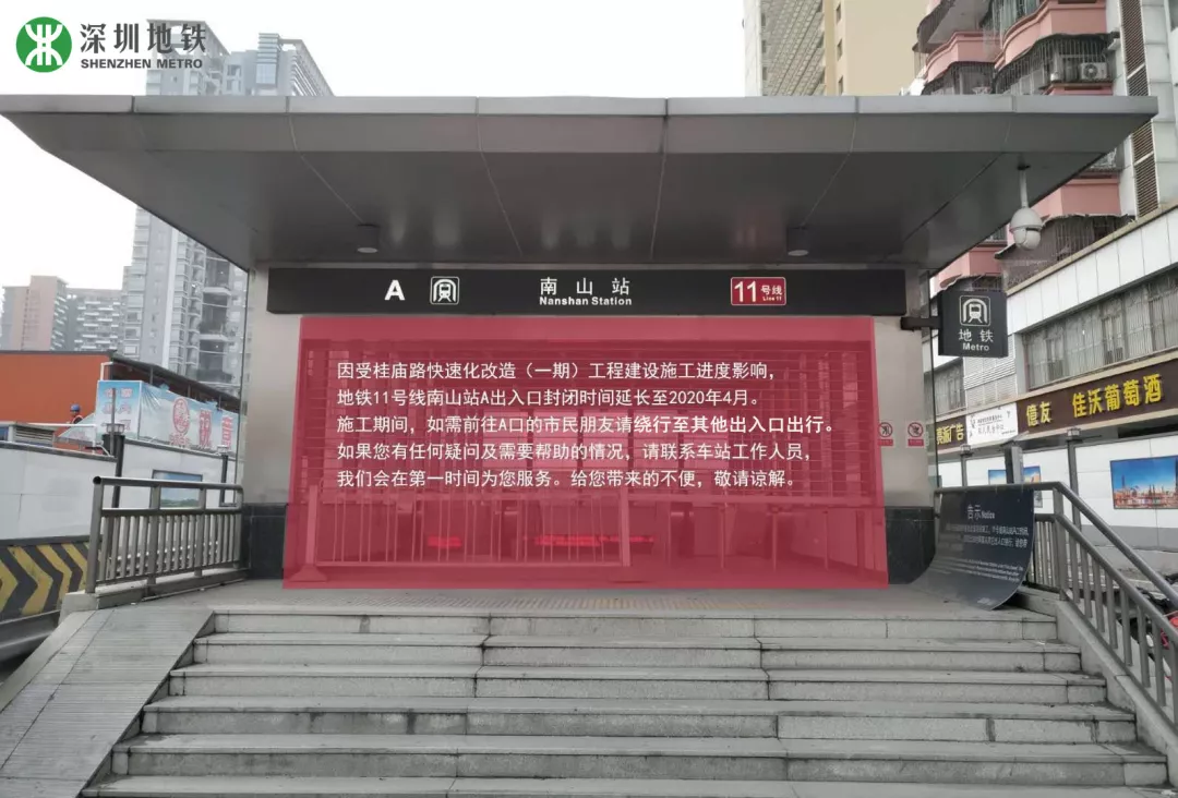 11號(hào)線南山站A出入口延長封閉時(shí)間