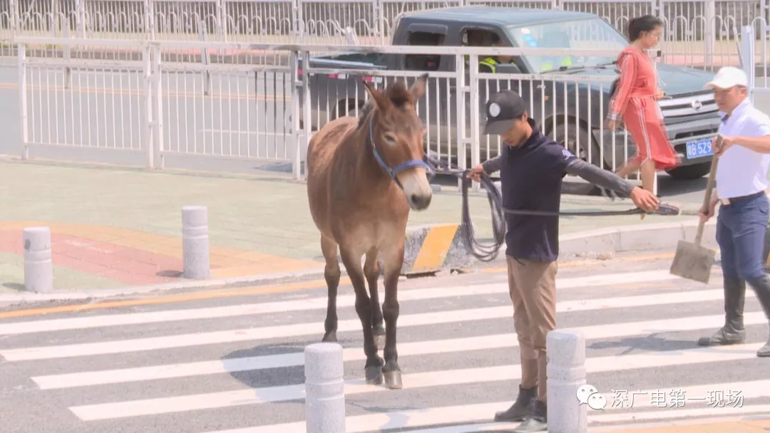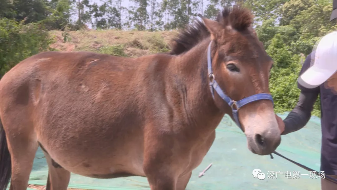 成年騾子路邊站崗是家養(yǎng)的,按照熱心市民留下的大概方位。記者在觀瀾街道庫坑社區(qū)平安路段終于看到了這個“稀客”的真容,只不過此時的它已經(jīng)被套上了韁繩,服服帖帖的站在馬術(shù)教練旁邊。