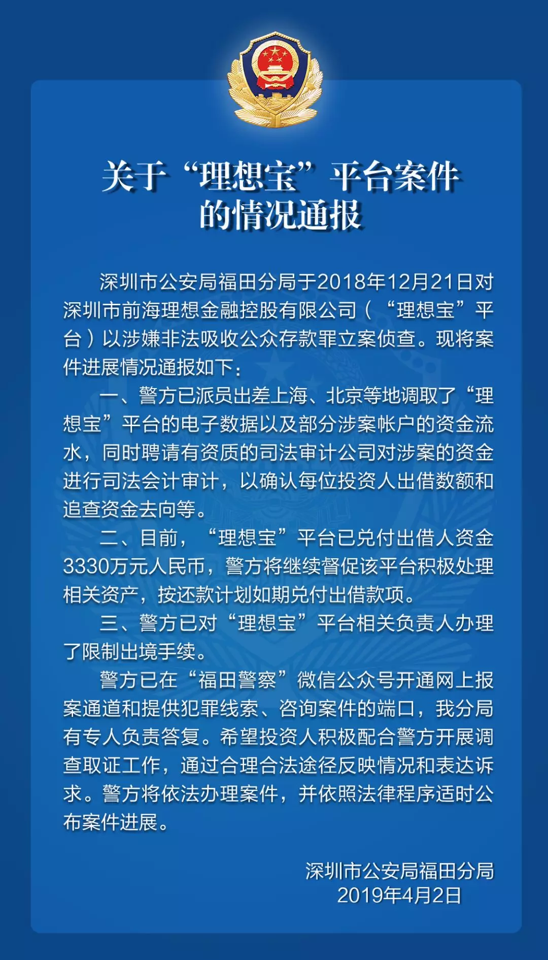 關于“理想寶”“三加壹”平臺的案件情況通報