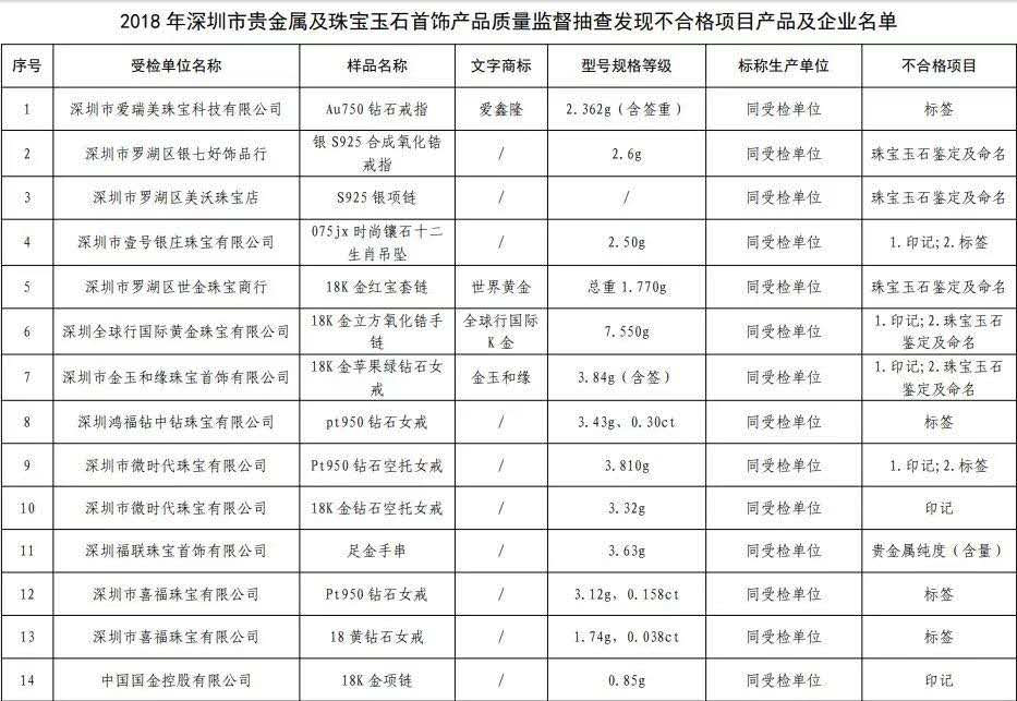 原標(biāo)題:深圳最新抽檢珠寶抽檢結(jié)果公布,不合格產(chǎn)品發(fā)現(xiàn)率16.3%