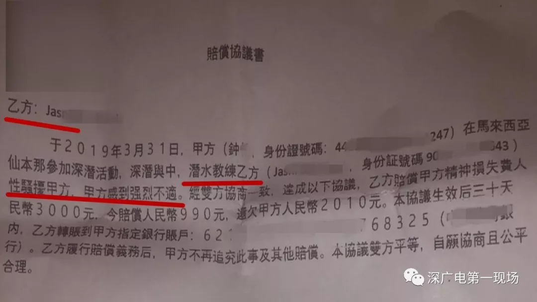 貌似事情有了結(jié)果,但兩天前小鐘和小丹返回了國內(nèi),但賠償卻一直沒有兌現(xiàn),于是兩人選擇向媒體曝光,提醒市民外出旅游潛水時提防“色狼”。
