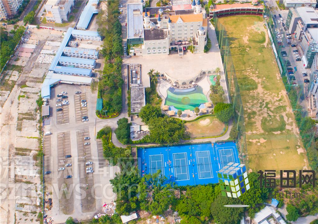 記者通過航拍鏡頭發(fā)現(xiàn),該中心球場內(nèi)沒有一位顧客在此健身鍛煉,高爾夫球場內(nèi)綠草坪已經(jīng)被鏟除,露出了黃土表層?;@球場上籃球架以及球場圍網(wǎng)也已拆除,顯得略為冷清。
