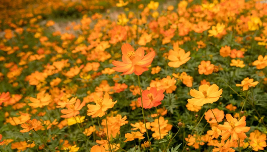 幾十上百朵小花爭相聚集,宛如一個半球形的紅橙色團子,植被高低錯落,說一句花團錦簇,倒也貼切。